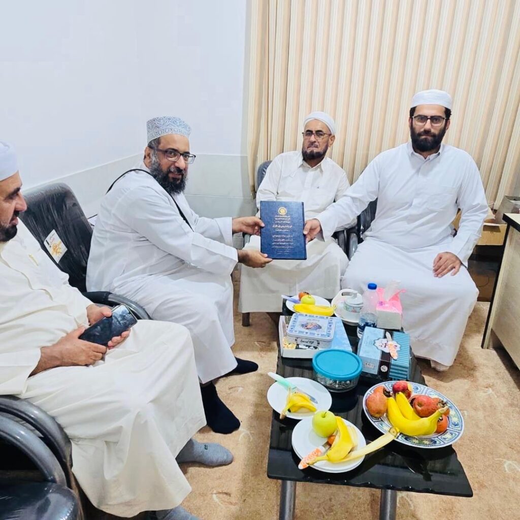 Our discussions also touched on their longstanding connection with Sheikh Habib ibn ‘Ali al-Farsi (d. 1329 AH), originally from Bastak, who later settled in Muscat and Sohar. He founded the Shāfi‘ī school in Mughb, in old Muscat near Qasr al-‘Alam. Sultan al-Ulama School has long held strong ties with Shāfi‘ī scholars of Oman and the UAE. Among its notable Omani alumni is Sheikh ‘Abd Allah ibn Muhammad al-Kharji, whose father was one of Oman’s major Shāfi‘ī jurists. Sheikh ‘Abd Allah studied under Sultan al-Ulama in Lengeh, then returned to settle in Khasab (Musandam) in Oman, where he died in 1363 AH. He authored an important work titled “Ithaf al-Bashar bi-Ba‘d Hawadith al-Qarn al-Rabi‘ ‘Ashar” “إتحاف البشر ببعض حوادث القرن الرّابع عشر”. Also among the graduates was Sheikh Muhammad al-Marshadi, one of the Shāfi‘ī jurists of Sohar, who died in 1429 AH.