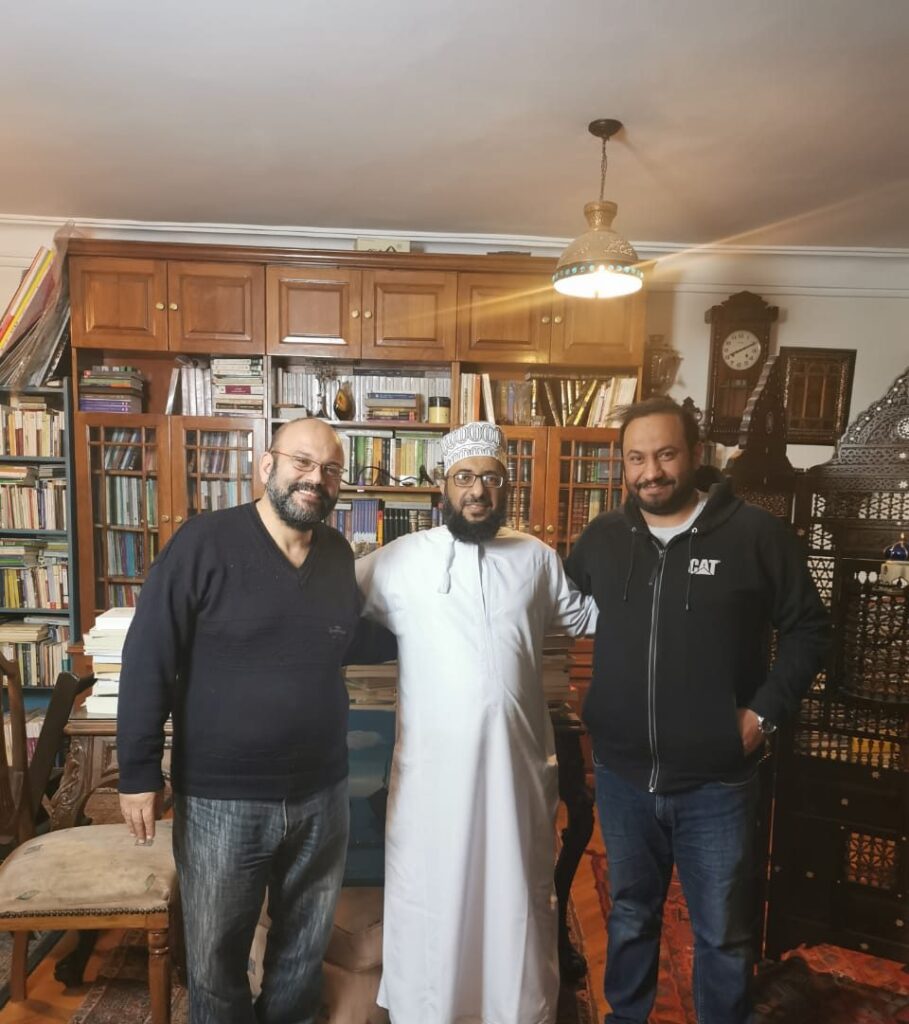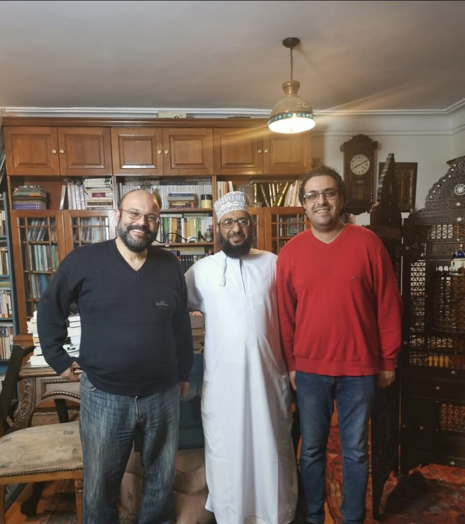 مع الباحث المصريّ أحمد سعد زايد في شقته بالإسكندريّة مارس 2021م بمشاكة بعض الأصدقاء المصريين الإسكندرانيين.