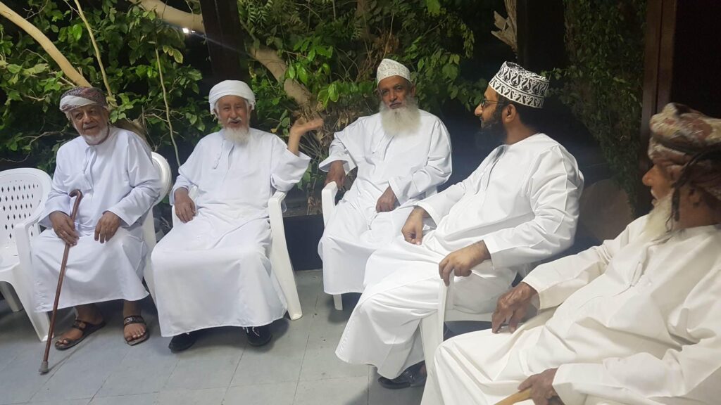 Meeting Sheikh Ahmed bin Muhammad Al-Salmi at his farm in Al-Mawalih Al-Janoubiyah, Al-Seeb, Muscat, with Ali bin Abdullah Al-Saidi, Saud bin Ali Al-Habsi, and Said bin Kharboush Al-Wahibi (Al-‘Alal), September 2019.